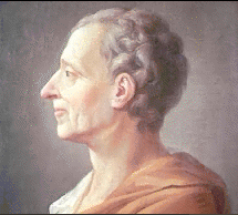 Charles de Secondat, baron de La Brède et de Montesquieu, est né le 18 janvier 1689, près de Bordeaux, à La Brède. De 1700 à 1705, il étudie au collège de Juilly, près de Paris, chez des Oratoriens. Au sortir du collège, il se consacre au droit. En 1708, il devient avocat au Parlement de Bordeaux, puis conseiller en 1714 et, en 1715, épouse Jeanne de Lartigue, protestante. Il publie, en 1720 , les Lettres persanes. Immense succès! Montesquieu séjourne en Angleterre de 1729 à 1731, la société anglaise va le choyer et il est présenté à la Cour.1734 : il publie les Considérations sur les causes de la grandeur des Romains et de leur décadence. Décadence de Montesquieu, s'écrient certains ! C'est en 1748 que parait, à Genève, l'uvre majeure de Montesquieu, De l'esprit des lois, écrite en une vingtaine d'années. Succès une fois de plus considérable : le livre s'arrache. Cet ouvrage sera mis à l'index.